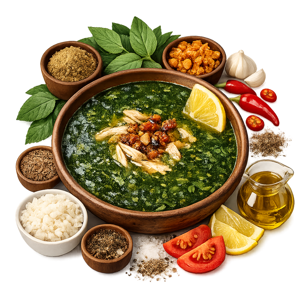 Egyptian Molokhia Soup is a beloved traditional dish known for its rich flavor and unique, silky texture. Made from finely chopped molokhia leaves (jute leaves), this vibrant green soup is a staple in Egyptian homes and a true taste of the country’s culinary heritage. The leaves are simmered in a savory broth, often made with chicken, rabbit, or beef, creating a comforting and nourishing base.